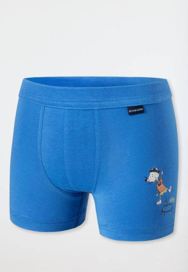 Hineinschlüpfen und wohlfühlen: Diese Jungenshorts in strahlendem Blau begeistern in bester SCHIESSER-Qualität! Auf dem Bein der Tagwäsche wird unser Liebling Rat Henry auf dem Trampolin zur echten Sportskanone. Das bequeme Feinripp-Material aus weichem Modal und Baumwolle garantiert einen perfekten Temperaturausgleich an warmen Sommertagen. Fehlt nur noch der komfortable Softbund und schon ist die neue Lieblingsunterwäsche perfekt!