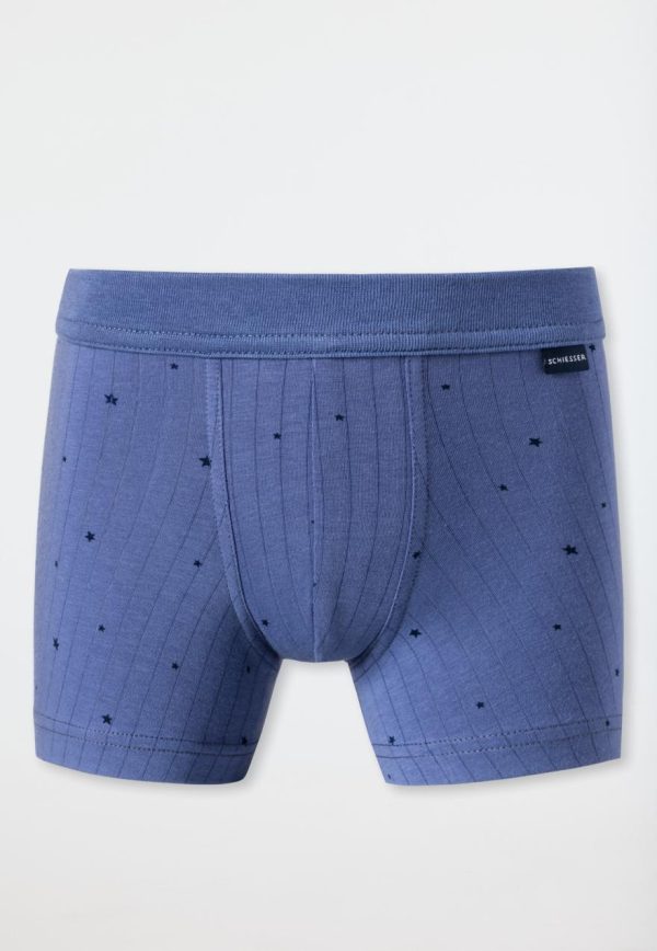 Diese coolen Jungenshorts begeistern in naturfreundlichem Tencel! Das atmungsaktive Material ist besonders sanft zur Haut und sorgt für ein rundum trockenes und kühles Tragegefühl. In modischem Blau mit feinem Glanzgarn und einem Sternen-Allover in Dunkelblau ist die gerippte Tagwäsche ein toller Hingucker. Der komfortable Softbund und weiche Beinabschlüsse garantieren jede Menge Bewegungsfreiheit. Ein echtes Lieblingsteil für höchste Ansprüche in bester SCHIESSER-Qualität!